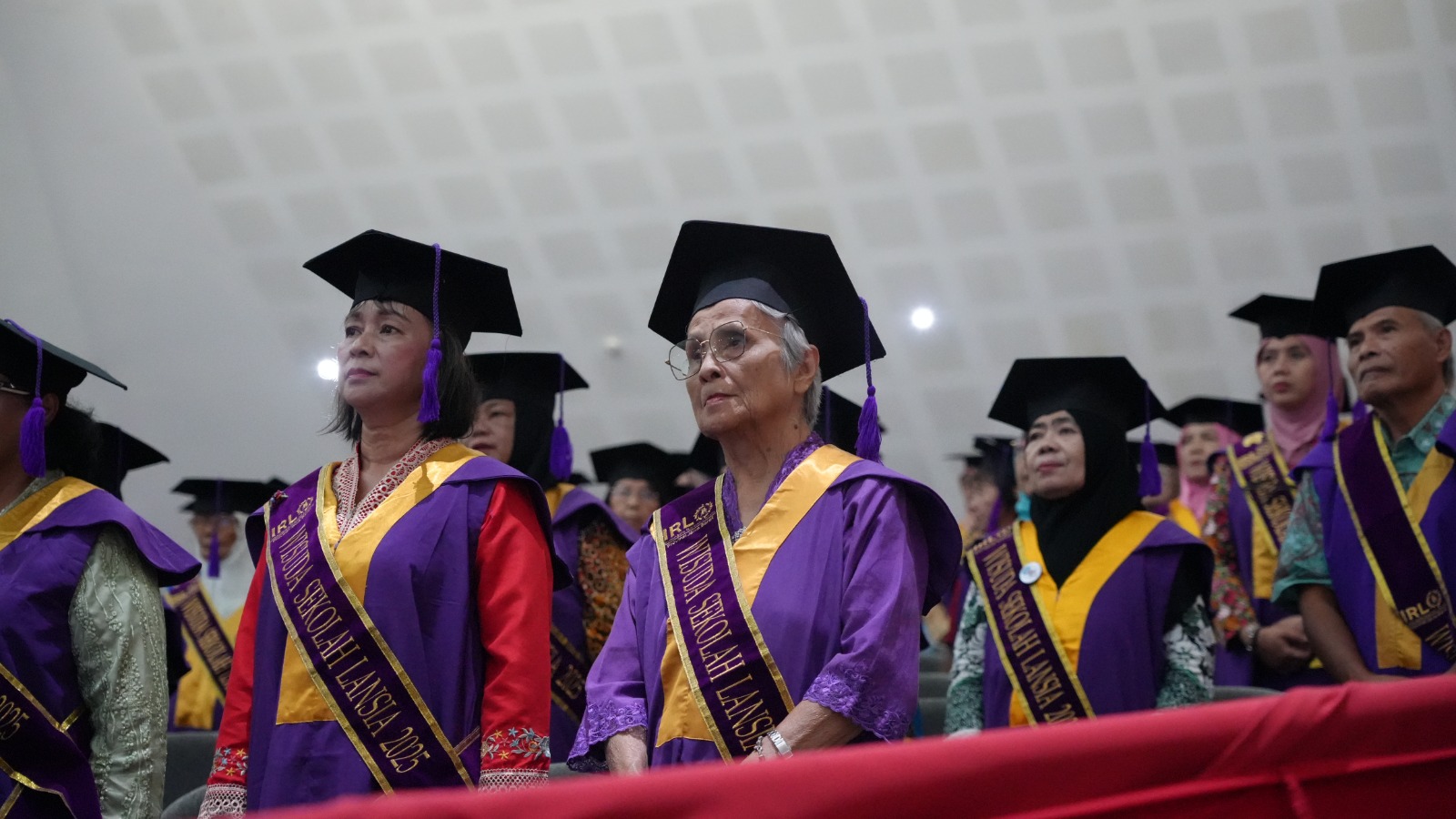 Pemerintah Kabupaten (Pemkab) Bogor melalui Dinas Pemberdayaan Perempuan, Perlindungan Anak, Pengendalian Penduduk, dan Keluarga Berencana (DP3AP2KB) berkolaborasi dengan Dinas Sosial, Yayasan Indonesia Ramah Lansia Jawa Barat, Rukun Senior Living, Sekolah Lansia Khairul Umah, Sekolah Lansia BKL Wijaya Kesuma dan Sekolah Lansia Cinta Bersama menggelar Wisuda Sekolah Lansia se-Kabupaten Bogor di Auditorium Setda, Rabu (17/12/25). Kegiatan ini dihadiri oleh 300 wisudawan dan wisudawati, serta perwakilan dari berbagai instansi terkait.