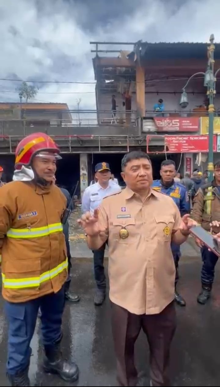 Bupati Garut, Abdusy Syakur Amin, tinjau lokasi kebakaran yang menghanguskan sejumlah kios di Jalan Pramuka, Kecamatan Garut Kota, pada Rabu pagi (14/1/2026).