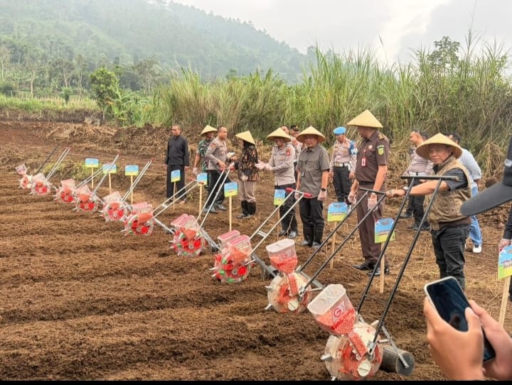 Kegiatan ini merupakan bagian dari program Penanaman Jagung Serentak seluas 750 hektare yang digagas oleh Polda Jawa Barat sebagai bentuk dukungan terhadap ketahanan pangan nasional. Lahan yang berada di wilayah Garut tersebut tampak telah diratakan dan dibersihkan, sehingga siap untuk proses tanam.