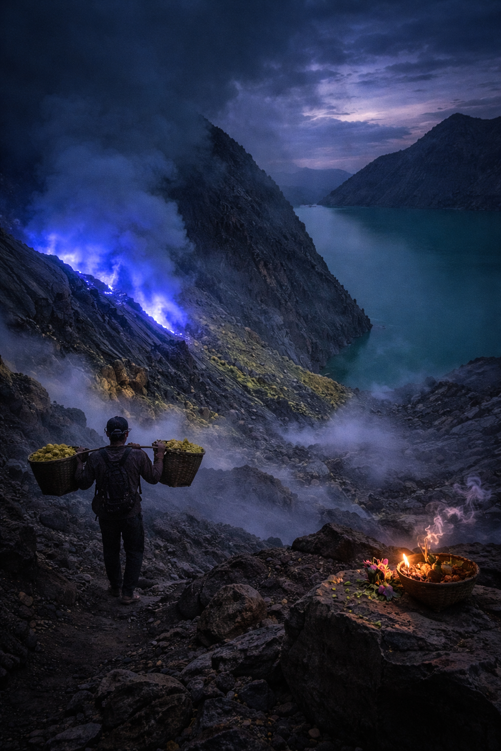 Keindahan alam berpadu dengan cerita rakyat membuat Gunung Ijen bukan sekadar tempat wisata, melainkan ruang pertemuan antara sains, sejarah, dan kepercayaan lokal yang hidup berdampingan hingga kini. (Sel)